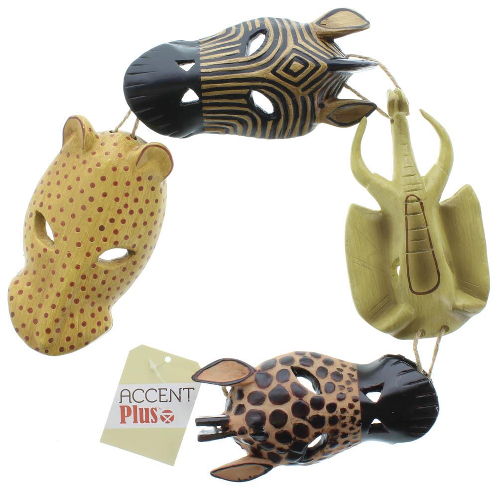 • Exotic African wall plaque with traditionally carved giraffe, elephant, zebra and leopard masks. With the artistic details, it will be the focal point of any room!