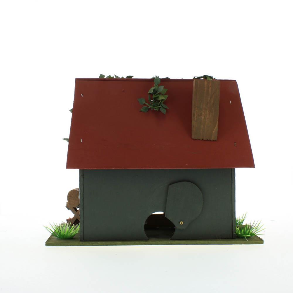 • To clean your garden birdhouse, remove out of season nesting materials through the hole in the back and wipe with a damp cloth as needed.