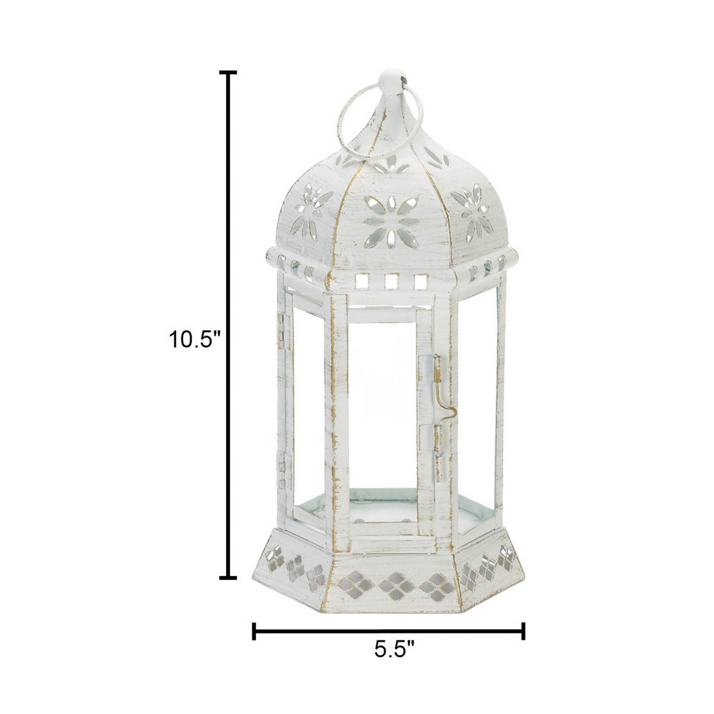 • Create a stylish candlelight display with this charming and chic floral metal lantern. It features gorgeous floral cut-out detailing along the top and base. Place a small candle inside the lantern and hang it from the top ring or set it on your tabletop for versatile styling.