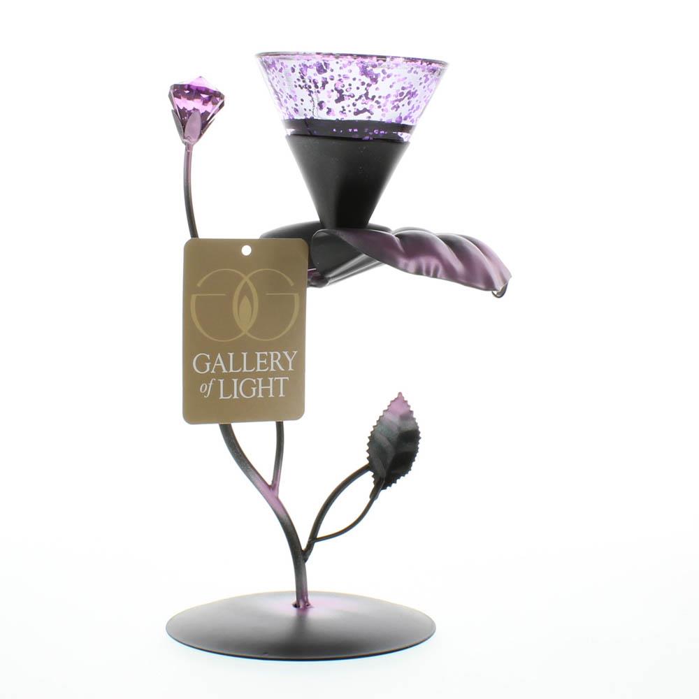 • Soothing shades of dusky lilac give this botanical tealight stand a gentle splendor. A dazzling backdrop for a candle's dancing flame, adding subtle romance to any setting!