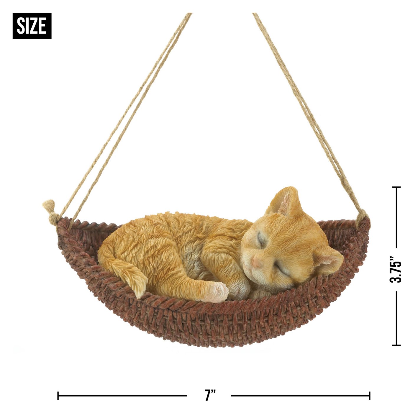 • A cute décor piece to brighten up your day, this hanging kitty figurine is a must-have for any cat lover. Suitable for indoor and outdoor display, this cat figurine features an adorable orange tabby taking a catnap in a hammock. Hang this cat figurine from your kitchen window or front porch to enjoy a daily dose of cuteness or give as a unique gift to the animal lover in your life.