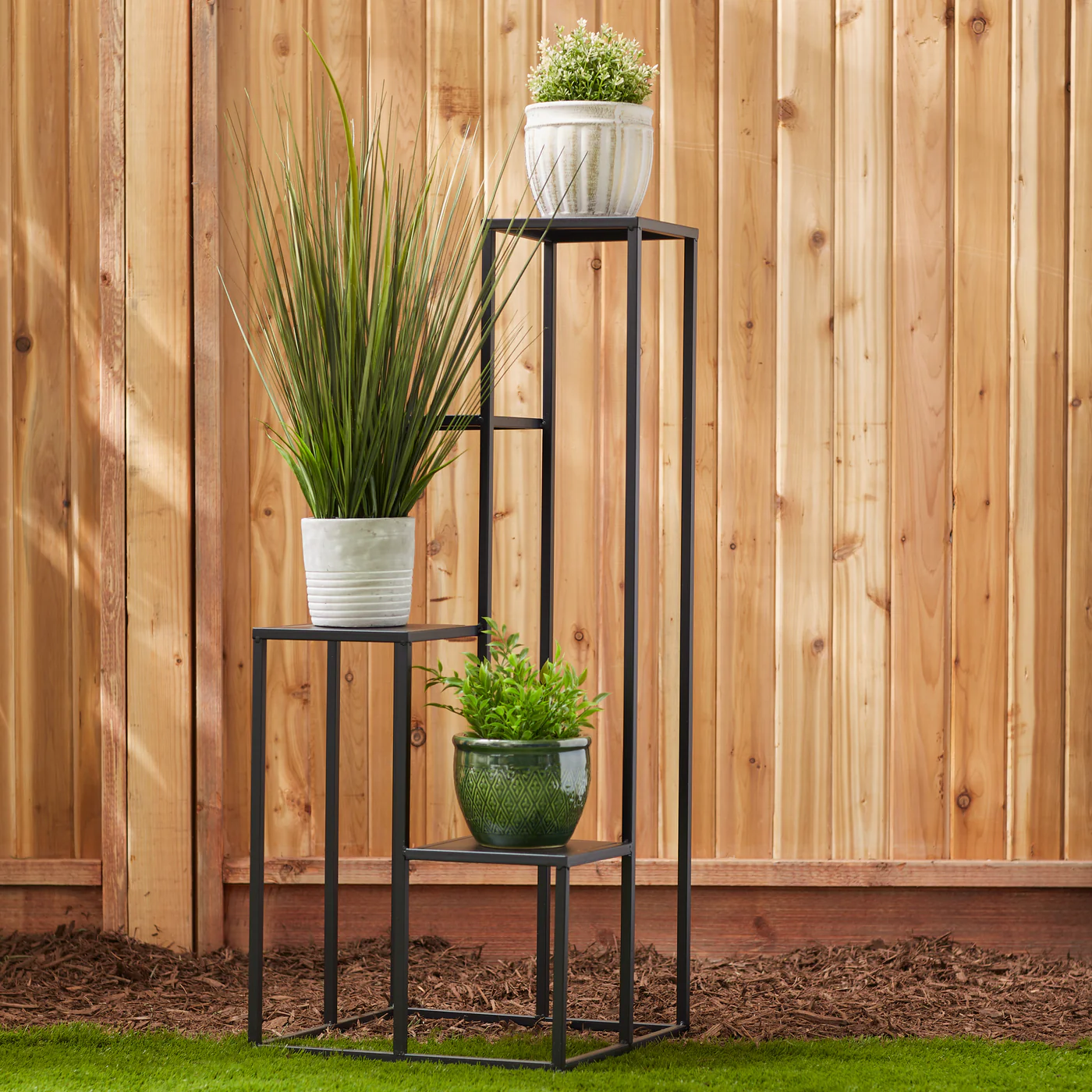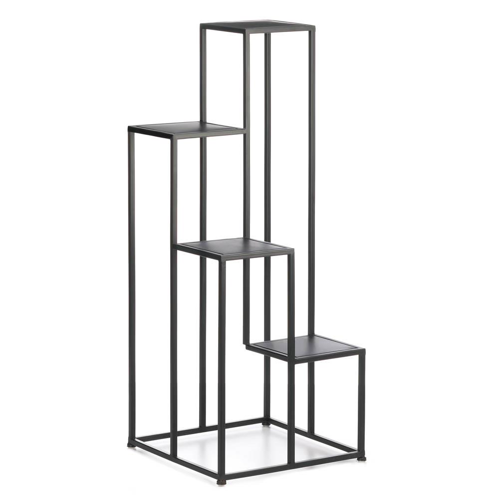 • Mix modern and natural decor elements with this four tier plant stand. The plant stand features a minimalist geometric design with four square platforms made from solid iron in a matte black finish. With enough space to support four large house plants, this decorative plant stand is guaranteed to draw attention in any space.