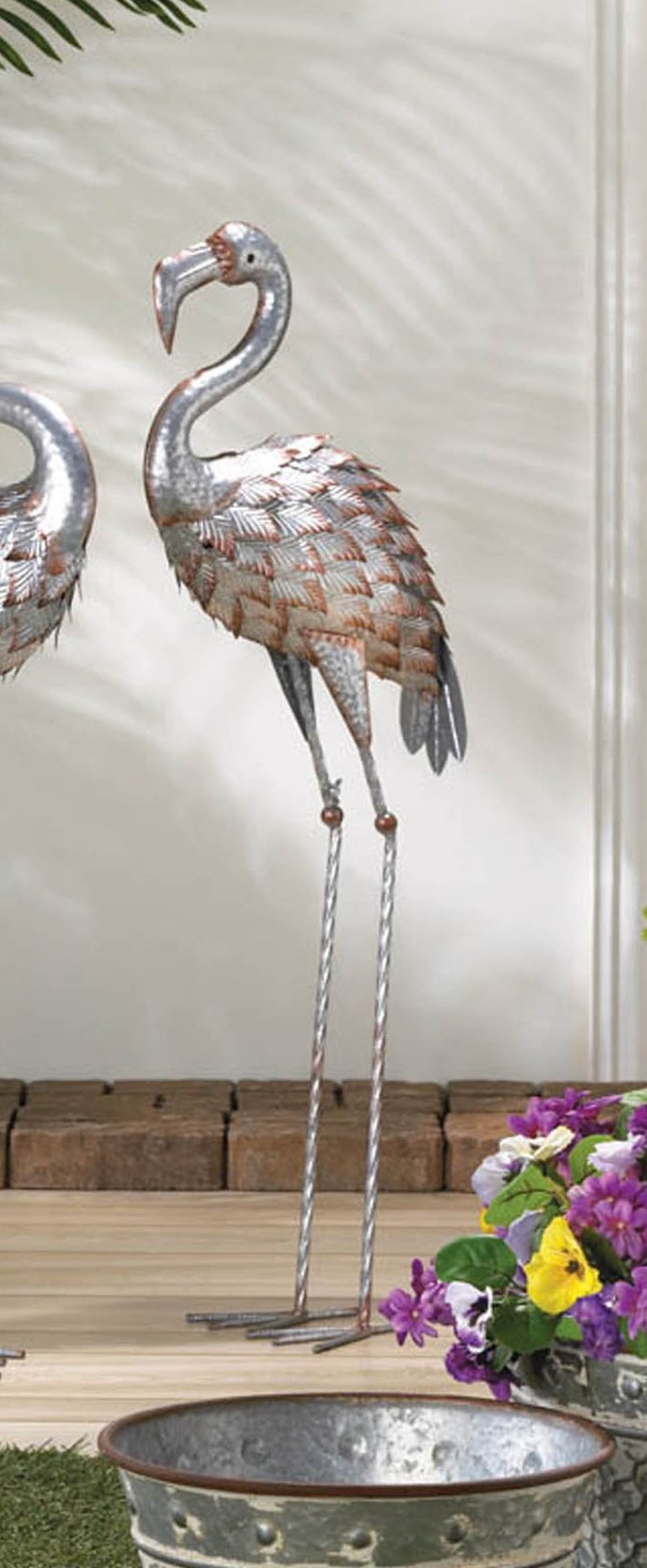 • Galvanized flamingo statue weighs 2.2 lbs. and measures 12x7.25x35.5 inches.