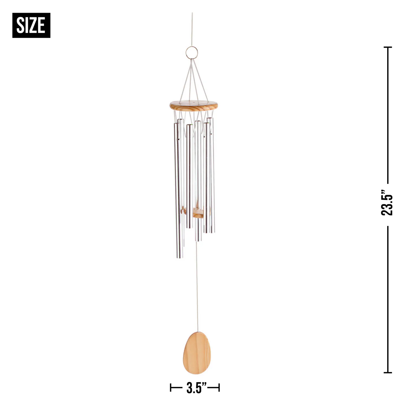 • The wind chimes weighs 0.3 lbs. and measures 3.5x3.5x23.5 inches.